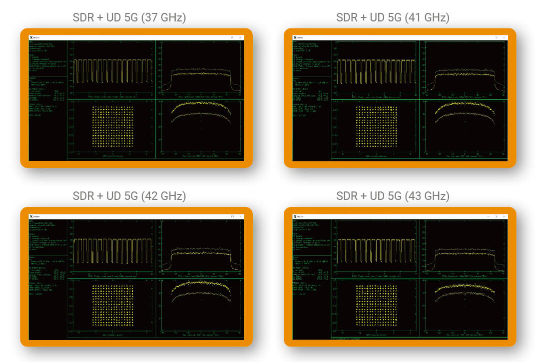 The comparison of results for frequencies up to 43 GHz shows that the TMYTEK UD Box does not add any extra noise, so the EVM values are kept at the same level in all the scenarios.